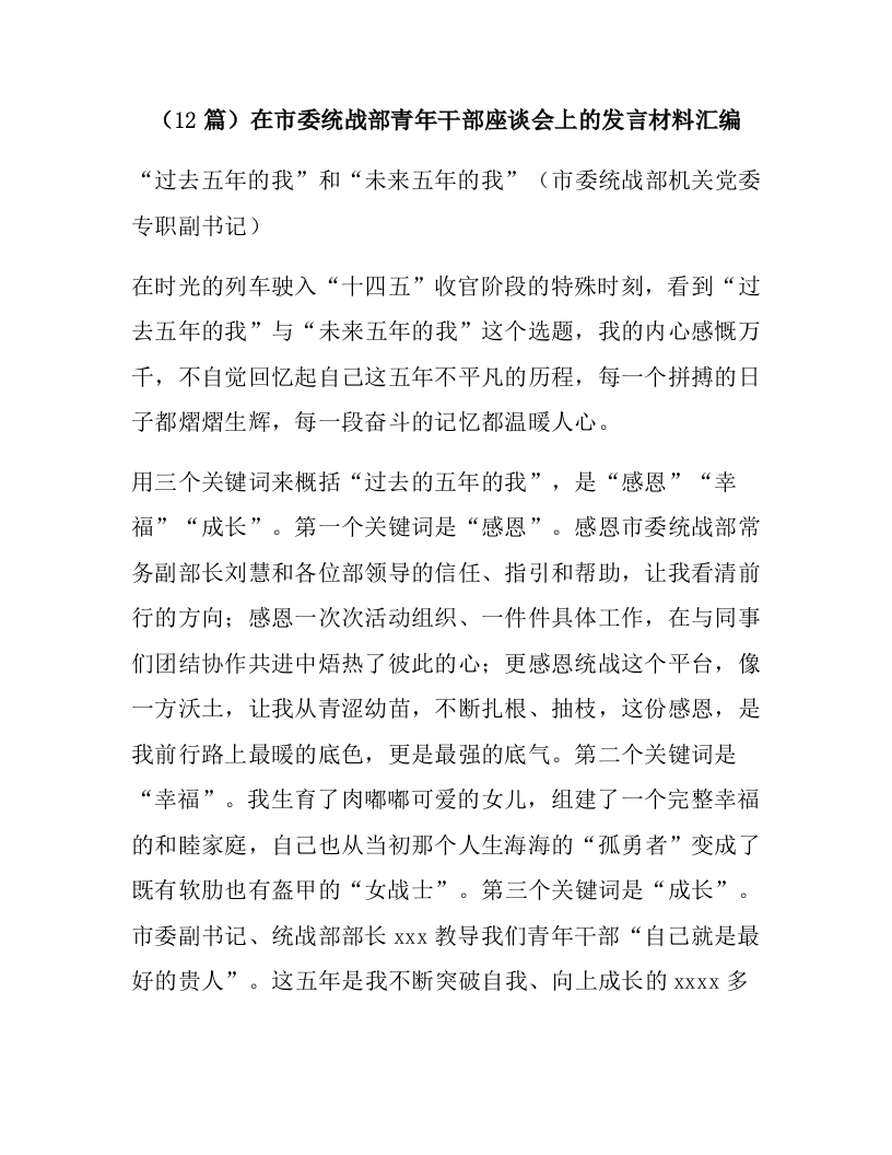 (12篇)在市委统战部青年干部座谈会上的发言材料汇编