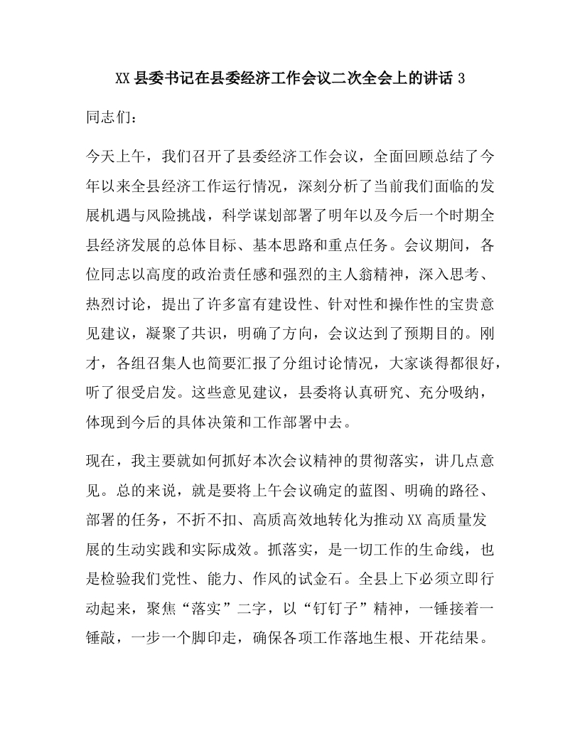 首页领导发言领导讲话XX县委书记在县委经济工作会议二次全会上的讲话3