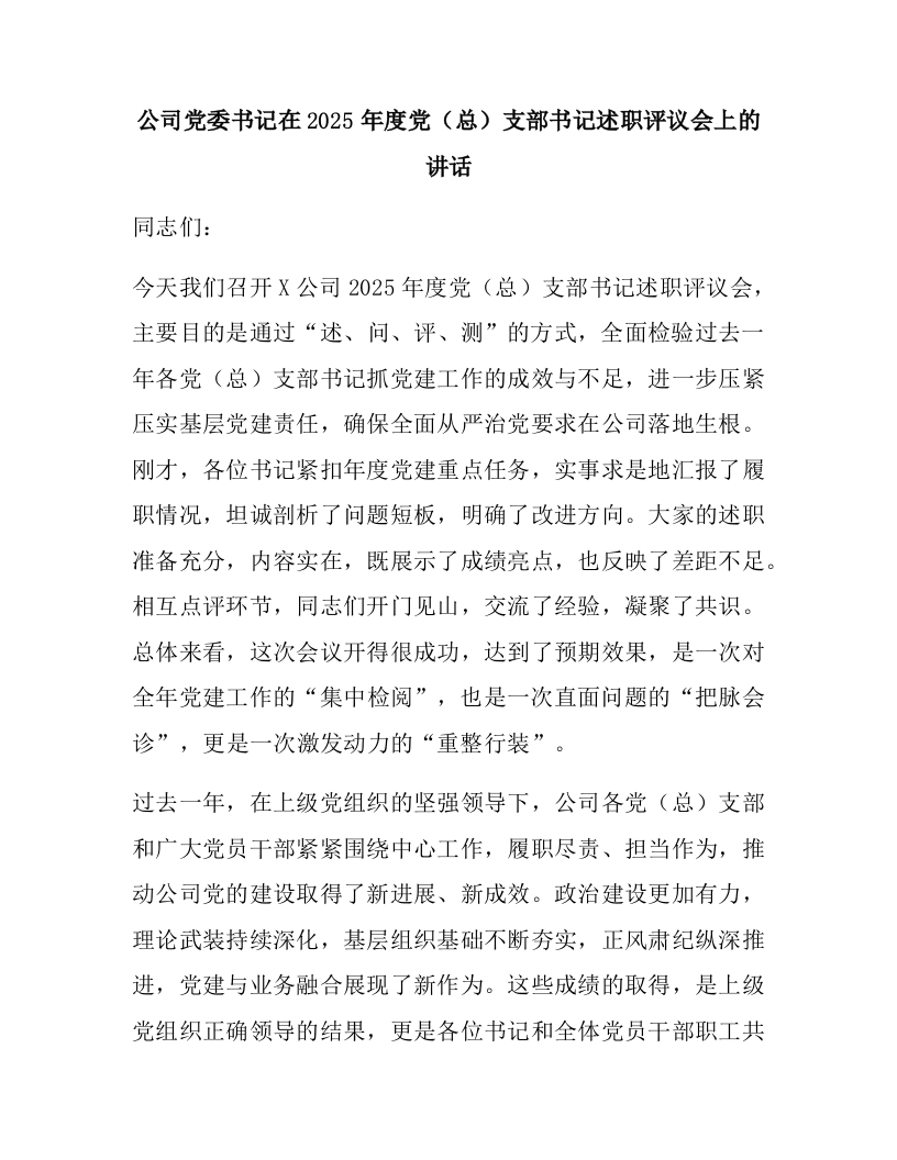 公司党委书记在2025年度党(总)支部书记述职评议会上的讲话