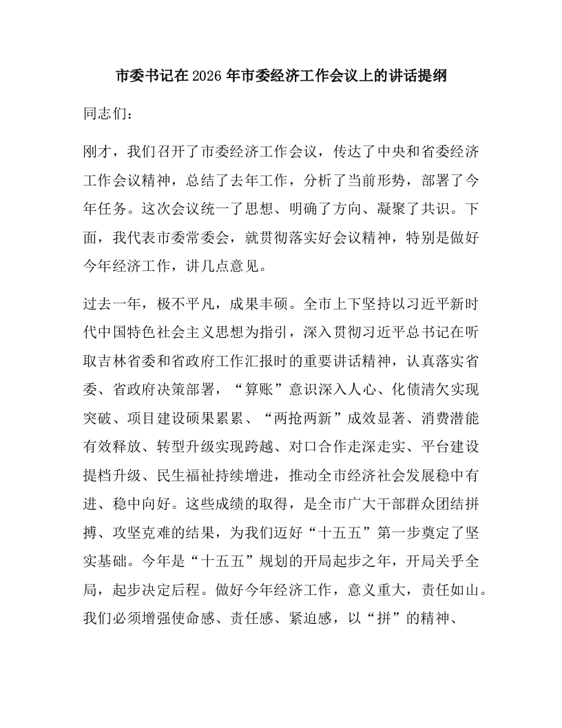 市委书记在2026年市委经济工作会议上的讲话提纲