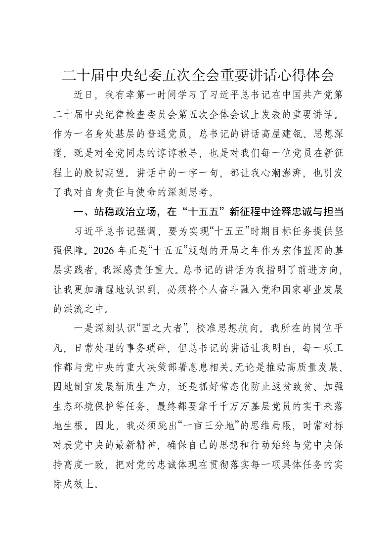 学习二十届中央纪委五次全会重要讲话精神心得体会发言2