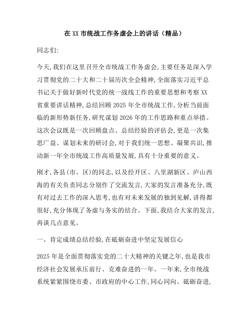 首页领导发言领导讲话在XX市统战工作务虚会上的讲话(精品)