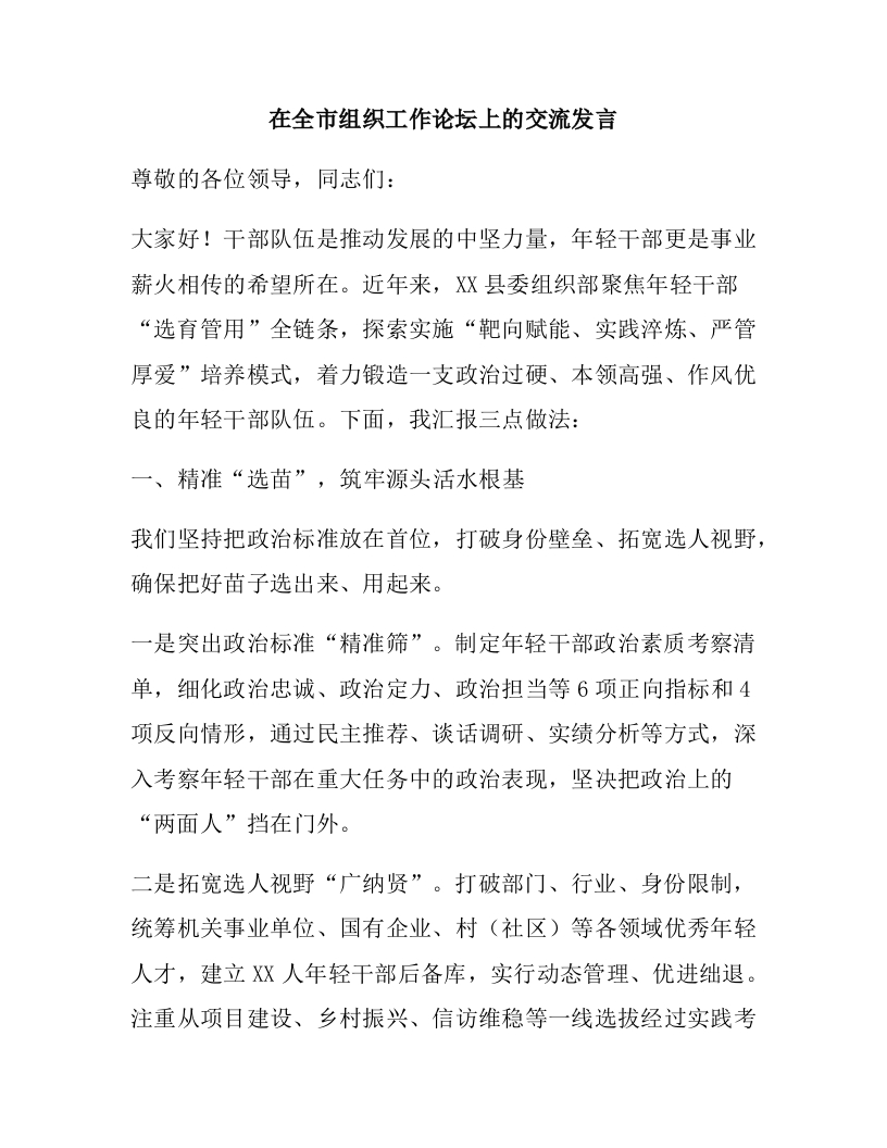 在全市组织工作论坛上的交流发言