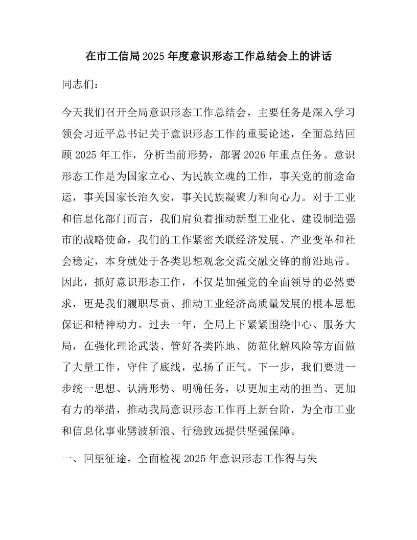 首页领导发言领导讲话在市工信局2025年度意识形态工作总结会上的讲话