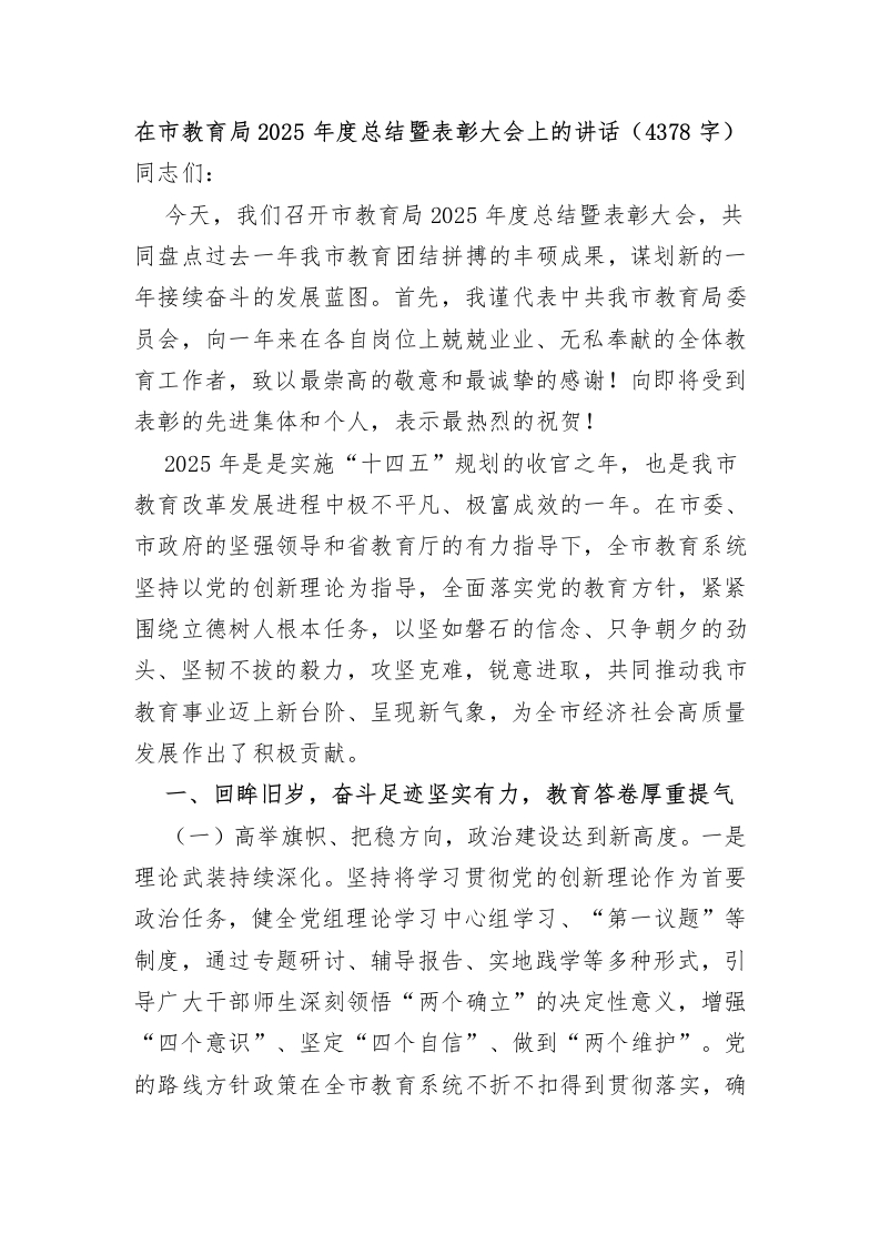 在市教育局2025年度总结暨表彰大会上的讲话(4378字)