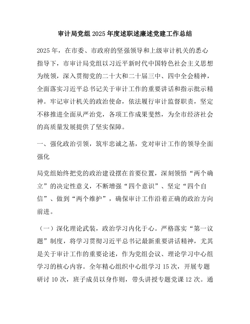 首页报告总结述职述廉审计局党组2025年度述职述廉述党建工作总结