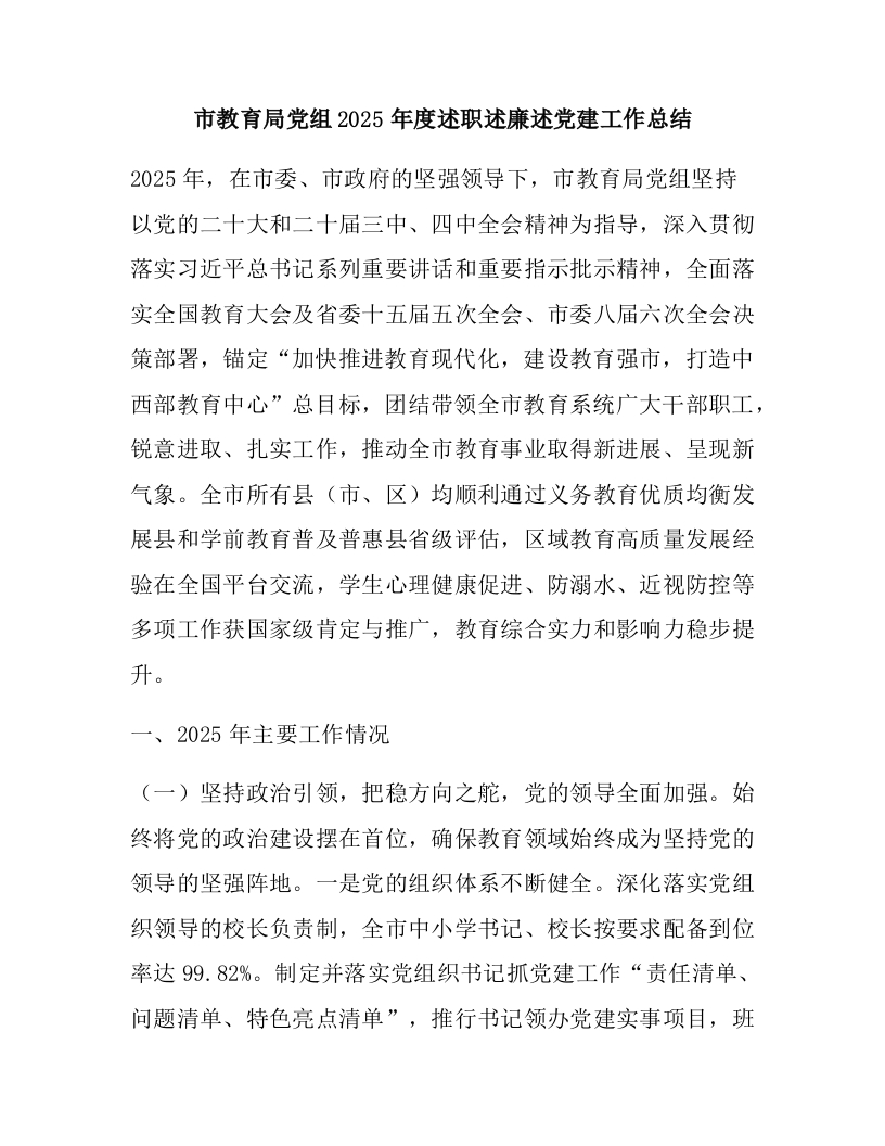 首页报告总结述职述廉市教育局党组2025年度述职述廉述党建工作总结