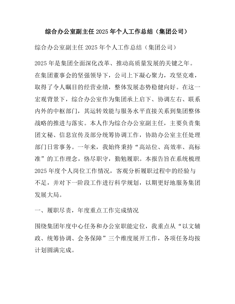 首页报告总结述职述廉综合办公室副主任2025年个人工作总结(集团公司)