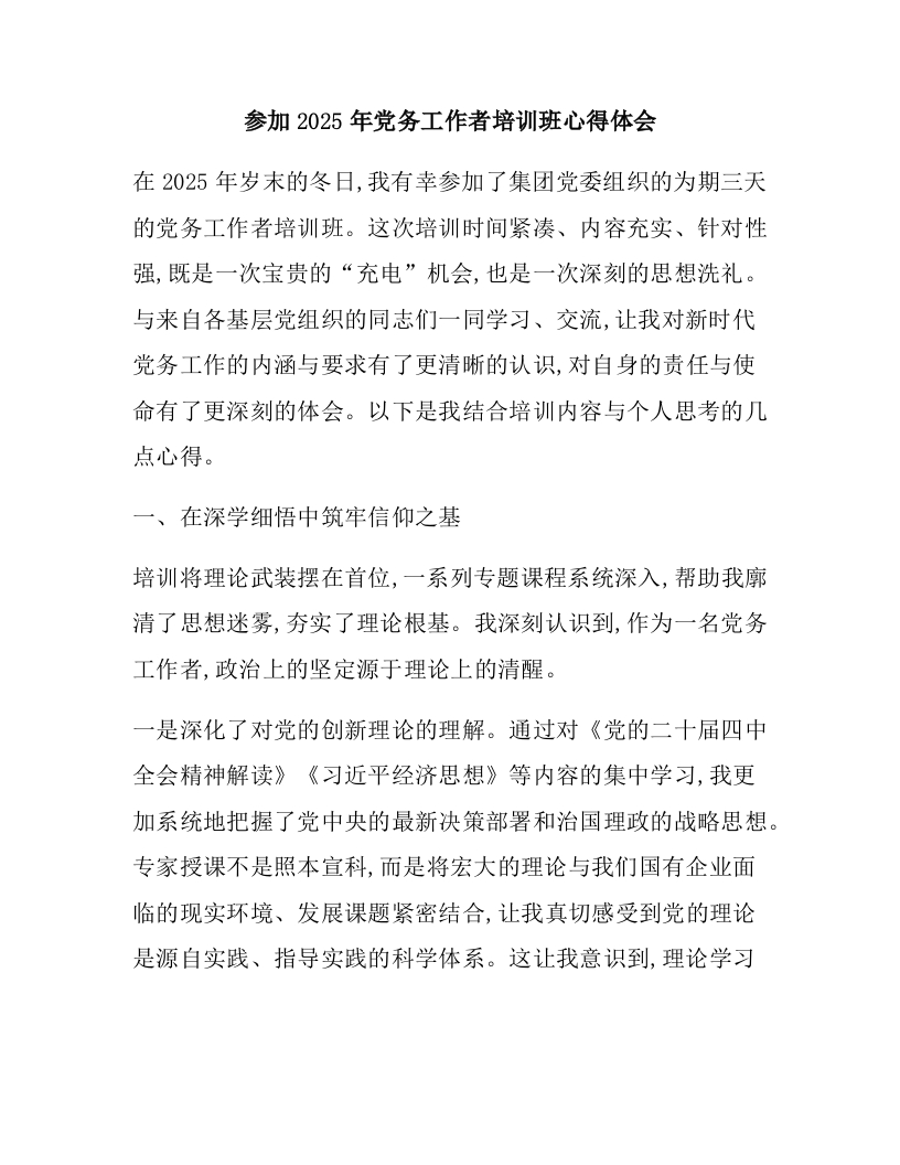 参加2025年党务工作者培训班心得体会