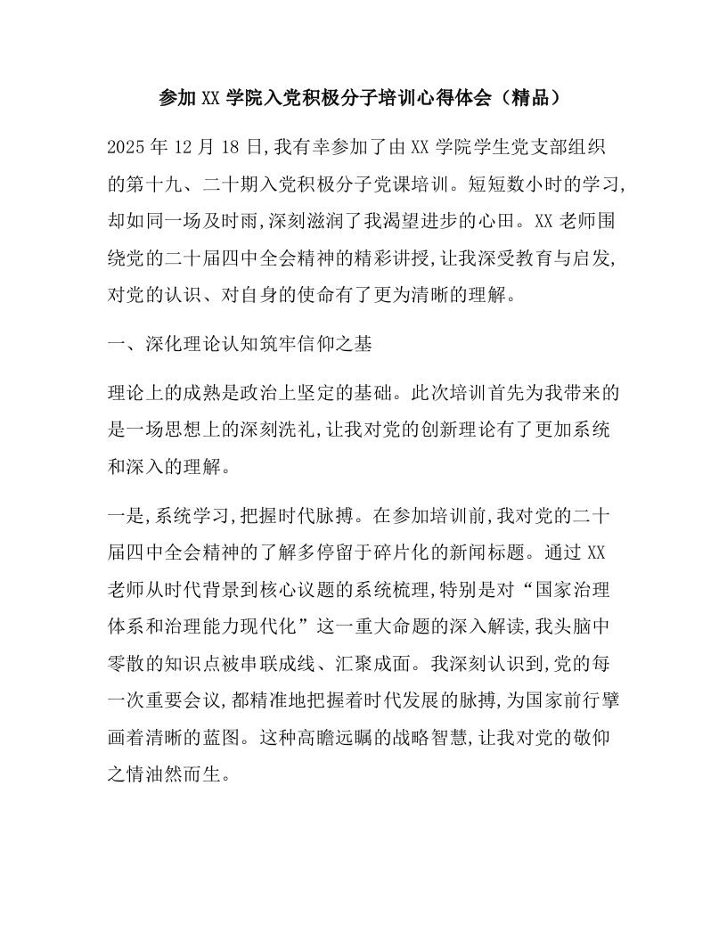 参加XX学院入党积极分子培训心得体会(精品)