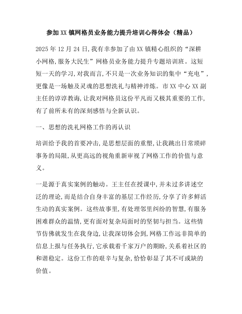 参加XX镇网格员业务能力提升培训心得体会(精品)