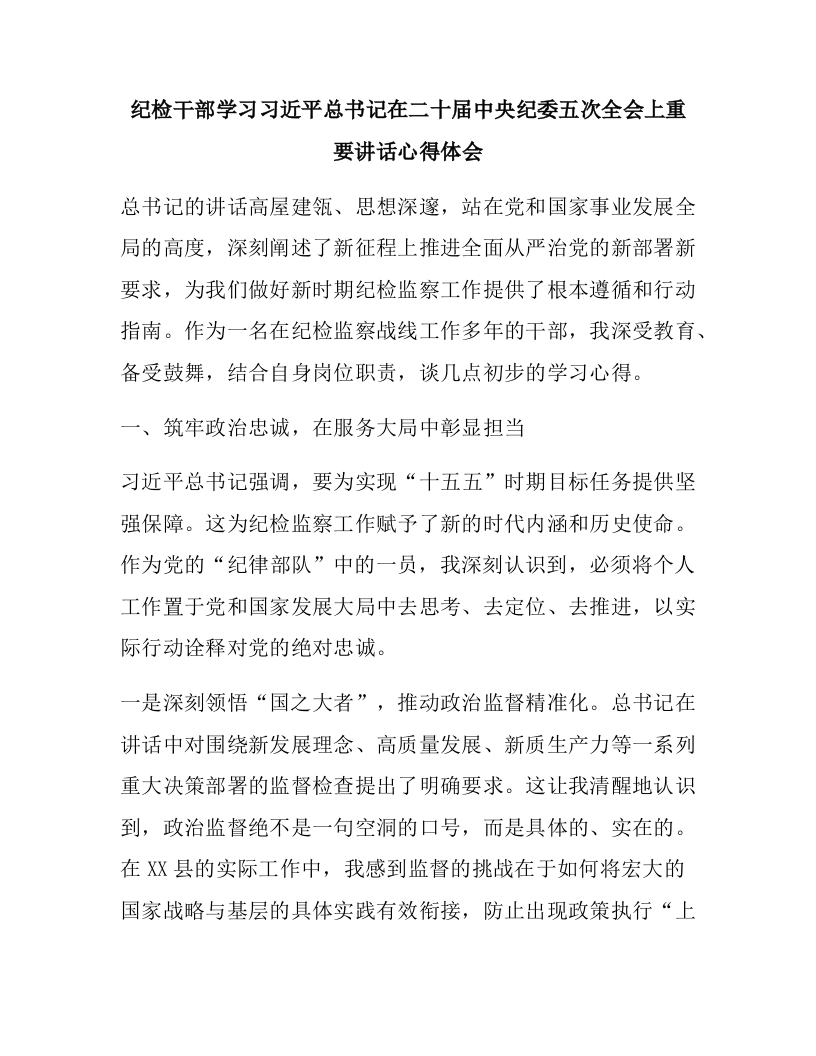纪检干部学习习近平总书记在二十届中央纪委五次全会上重要讲话心得体会