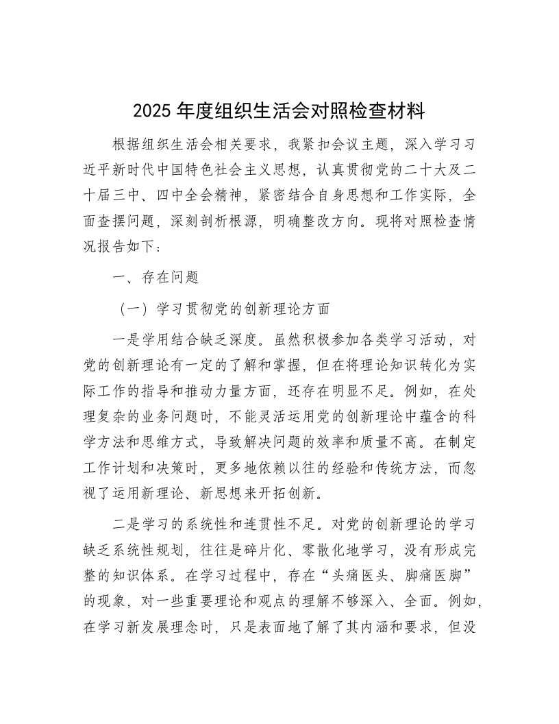 2025年度组织生活会个人对照检查4400字(学习贯彻党的创造理论;加强党性锤炼;筑牢中华民族共同体意识;联系群众服务;发挥先锋模范作用)