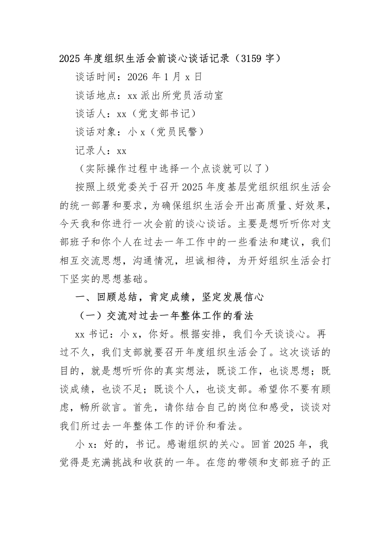 2025年度组织生活会前谈心谈话记录(3159字)