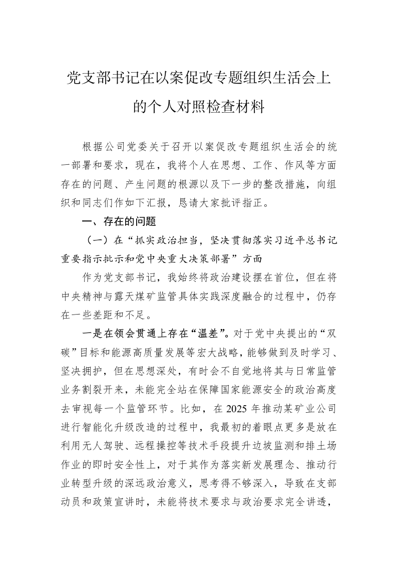 党支部书记在以案促改专题组织生活会上的个人对照检查材料