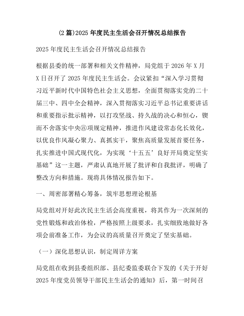 (2篇)2025年度民主生活会召开情况总结报告