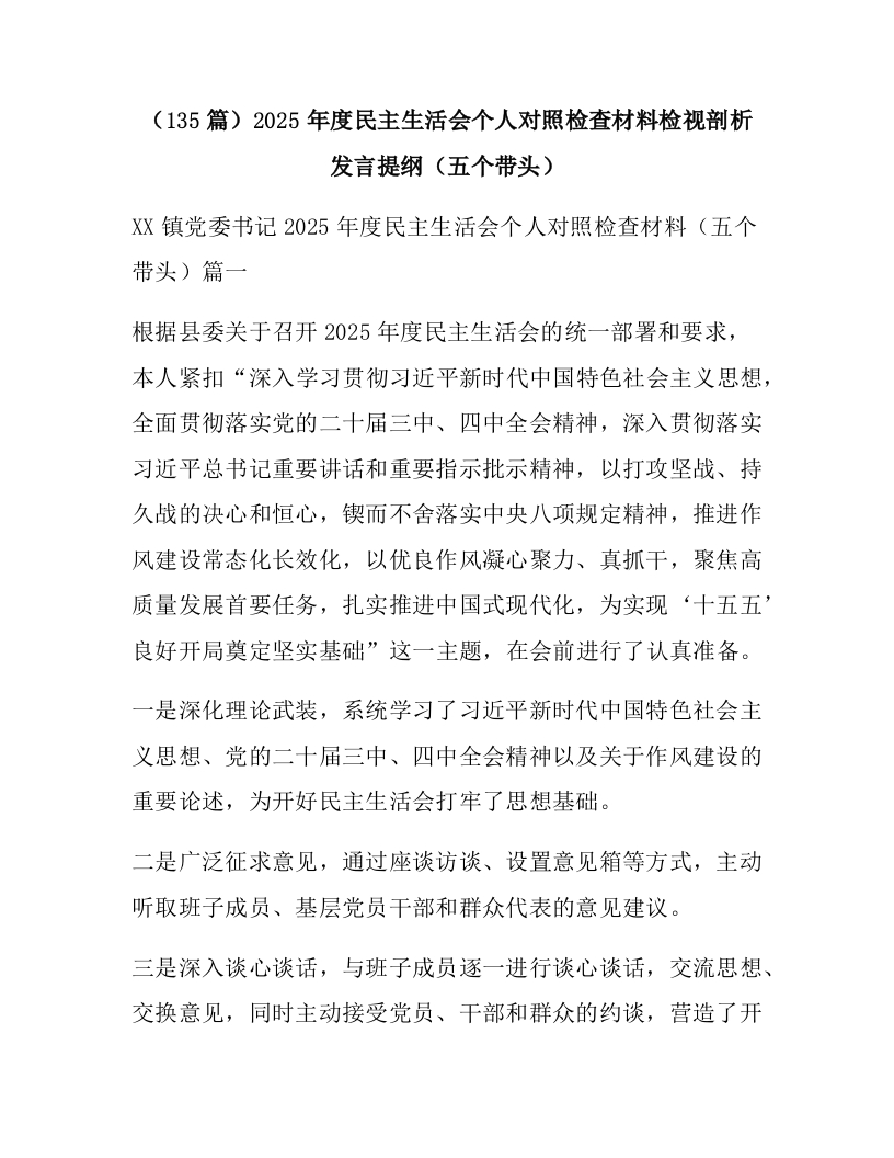 (135篇)2025年度民主生活会个人对照检查材料检视剖析发言提纲(五个带头)