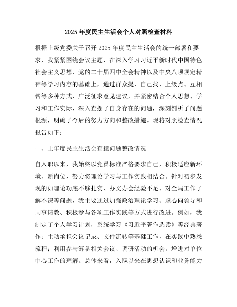 2025年度民主生活会个人对照检查材料
