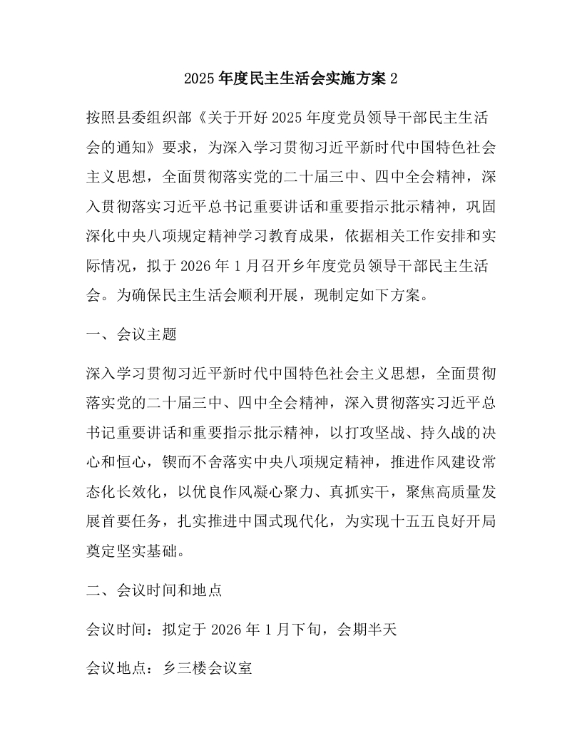首页热门分类民主生活会2025年度民主生活会实施方案2