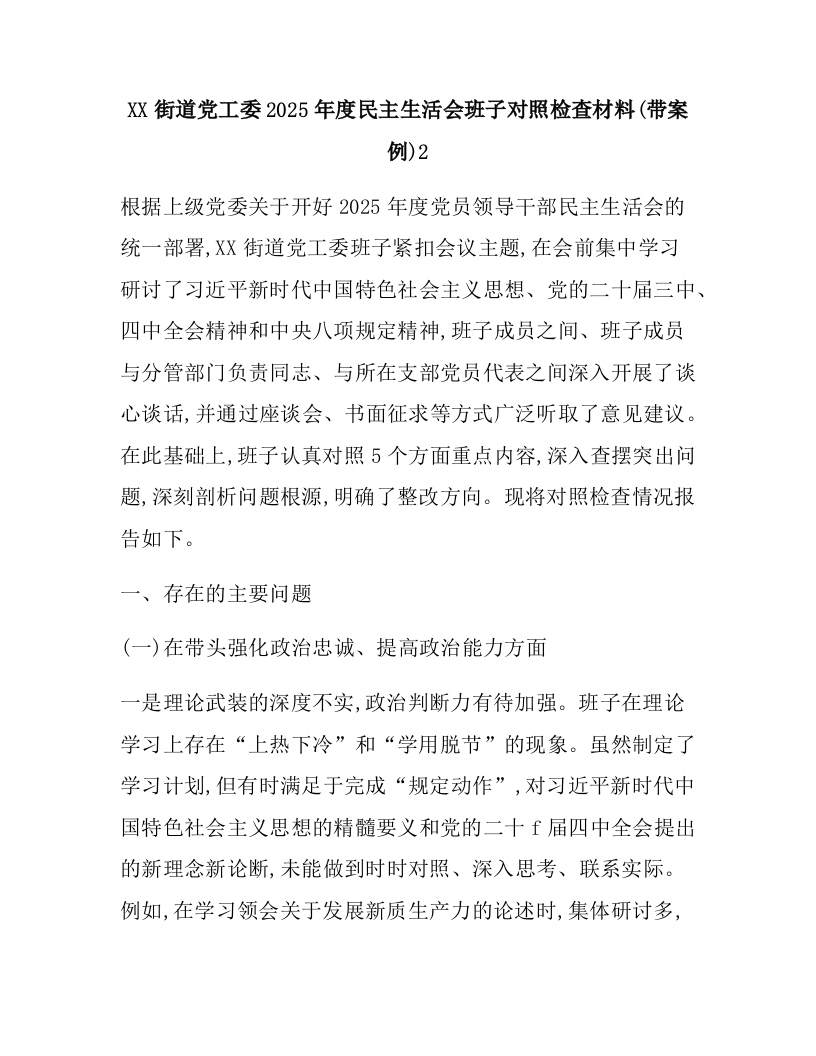 XX街道党工委2025年度民主生活会班子对照检查材料(带案例)2